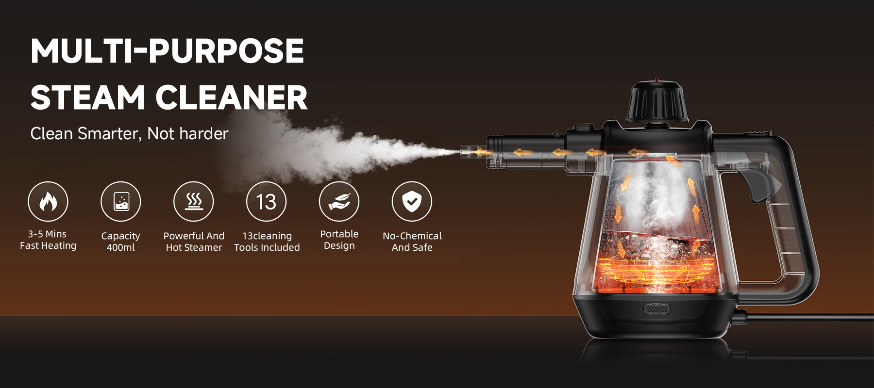 Pulitore a Vapore Portatile Multiuso con Blocco di Sicurezza e Set di Accessori da 11 pezzi per Tutto per Pavimenti, Rimuove il Grasso Cucina Auto Finestra Divano
