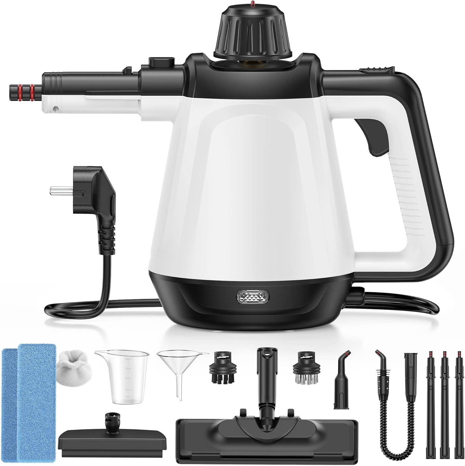 Pulitore a Vapore Portatile Multiuso con Blocco di Sicurezza e Set di Accessori da 11 pezzi per Tutto per Pavimenti, Rimuove il Grasso Cucina Auto Finestra Divano